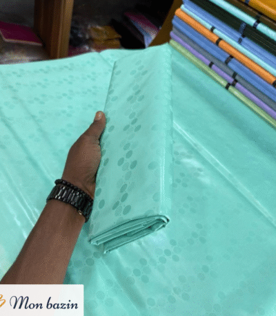Fraîche et apaisante, le Bazin riche Bleu Turquoise “Yanfolila” charme par sa teinte douce et lumineuse. Inspiré par les rivages tranquilles de Yanfolila, ce bleu évoque la sérénité, l’harmonie et l’élégance naturelle.