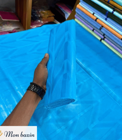 Calme et raffiné, le Bazin riche Bleu Océan “Banamba” séduit par sa teinte profonde et apaisante. Inspiré par les eaux paisibles et majestueuses de Banamba, ce bleu évoque la sérénité, l’harmonie et l’élégance subtile.