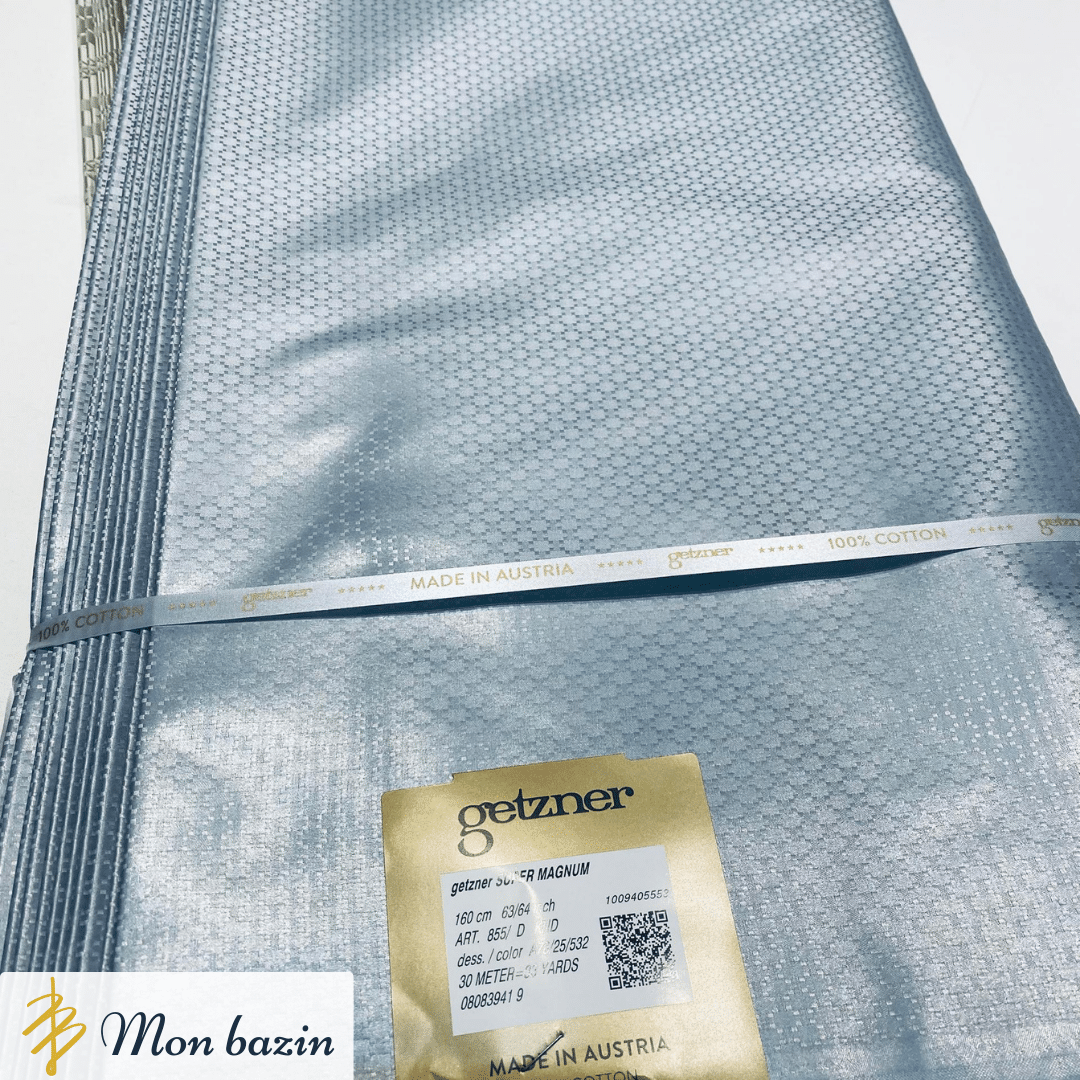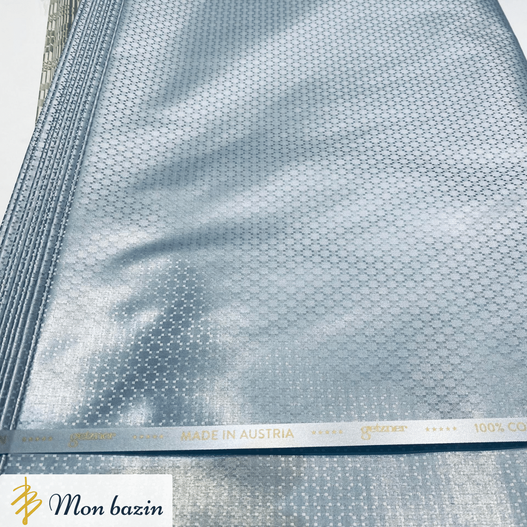 Lumineux et délicat, le Bazin Getzner Bleu Cendré “Kayes” séduit par sa teinte légère et apaisante, entre bleu pastel et gris perlé. Élégant et raffiné, il incarne la modernité discrète et le prestige intemporel.