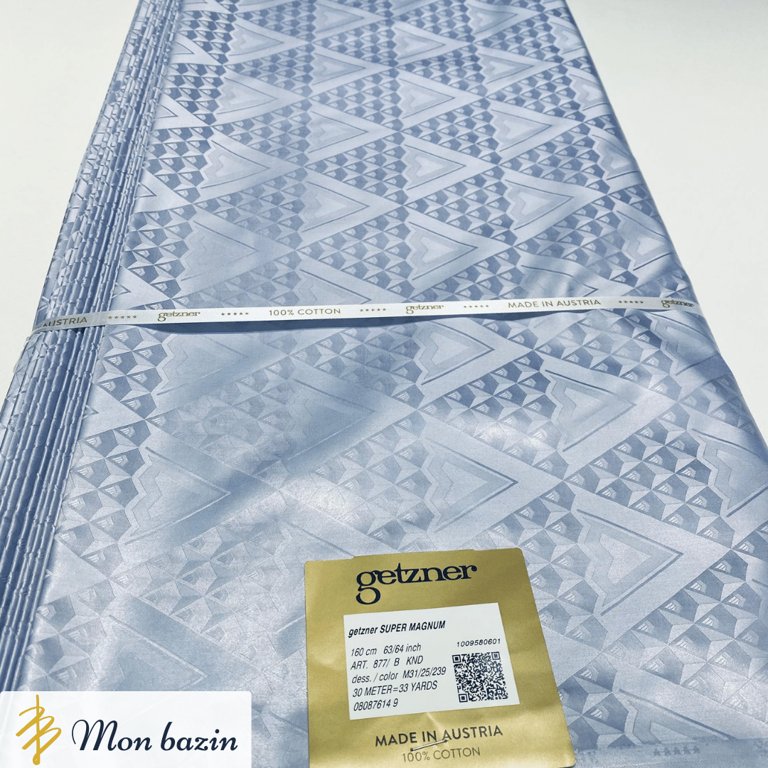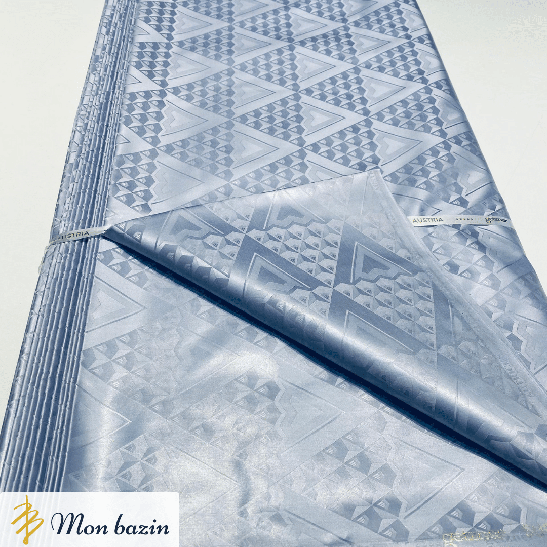 Lumineux et délicat, le Bazin Getzner Bleu Perle “Sikasso” séduit par sa nuance subtile, entre le bleu et le gris lavande. Sa teinte légère incarne à la fois sérénité et modernité, tout en mettant en valeur le raffinement des créations maliennes.