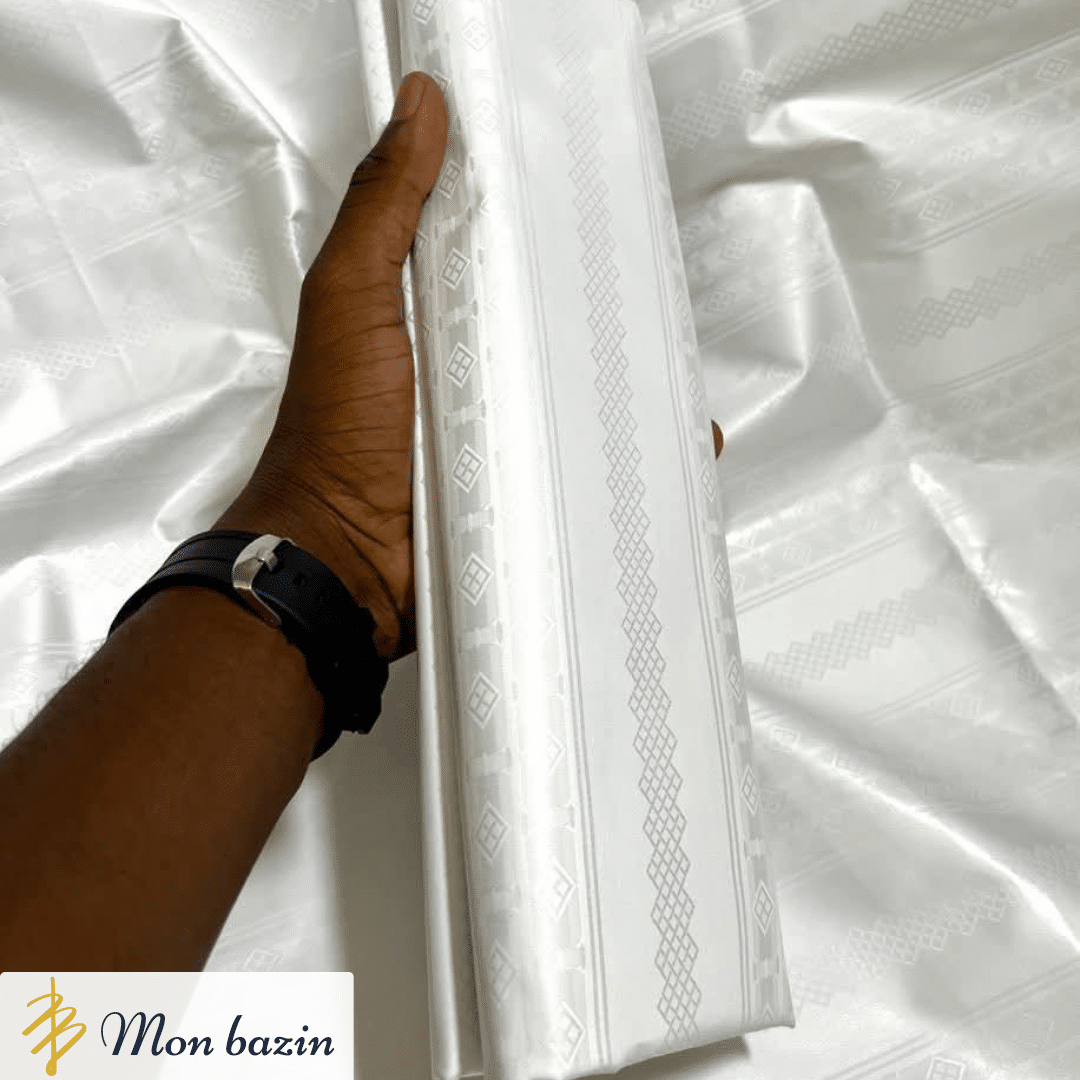Pure et lumineux, le Bazin riche Blanc Éclatant “San” séduit par sa douceur raffinée et son éclat subtil. Sa teinte blanche éclatante évoque la pureté, la sérénité et l’élégance de San, ville emblématique de l’art et de la tradition malienne.