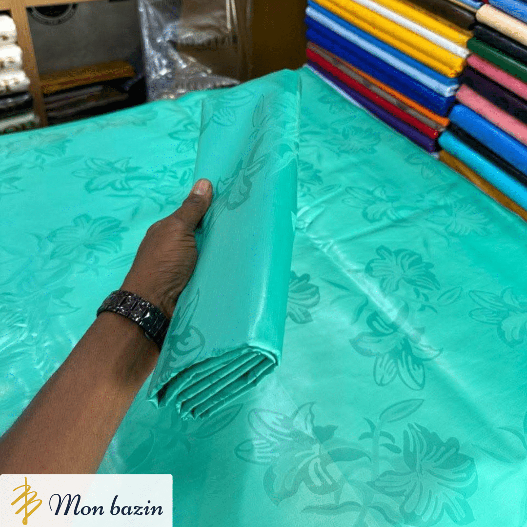Intense et apaisant, le Bazin riche Bleu Turquoise Profond “Ansongo” séduit par sa teinte profonde et lumineuse. Inspiré par les eaux tranquilles et vibrantes d’Ansongo, ce bleu évoque la sérénité, la noblesse et l’élégance subtile.