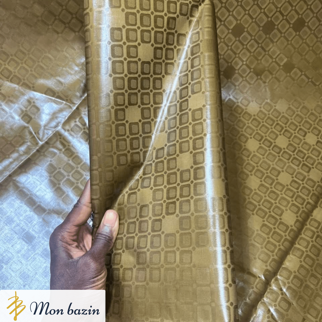 Tissé en coton damassé de haute qualité, ce bazin reflète la lumière avec une légère brillance soyeuse. Son toucher doux et sa fluidité naturelle en font un tissu idéal pour des créations alliant élégance, modernité et tradition.