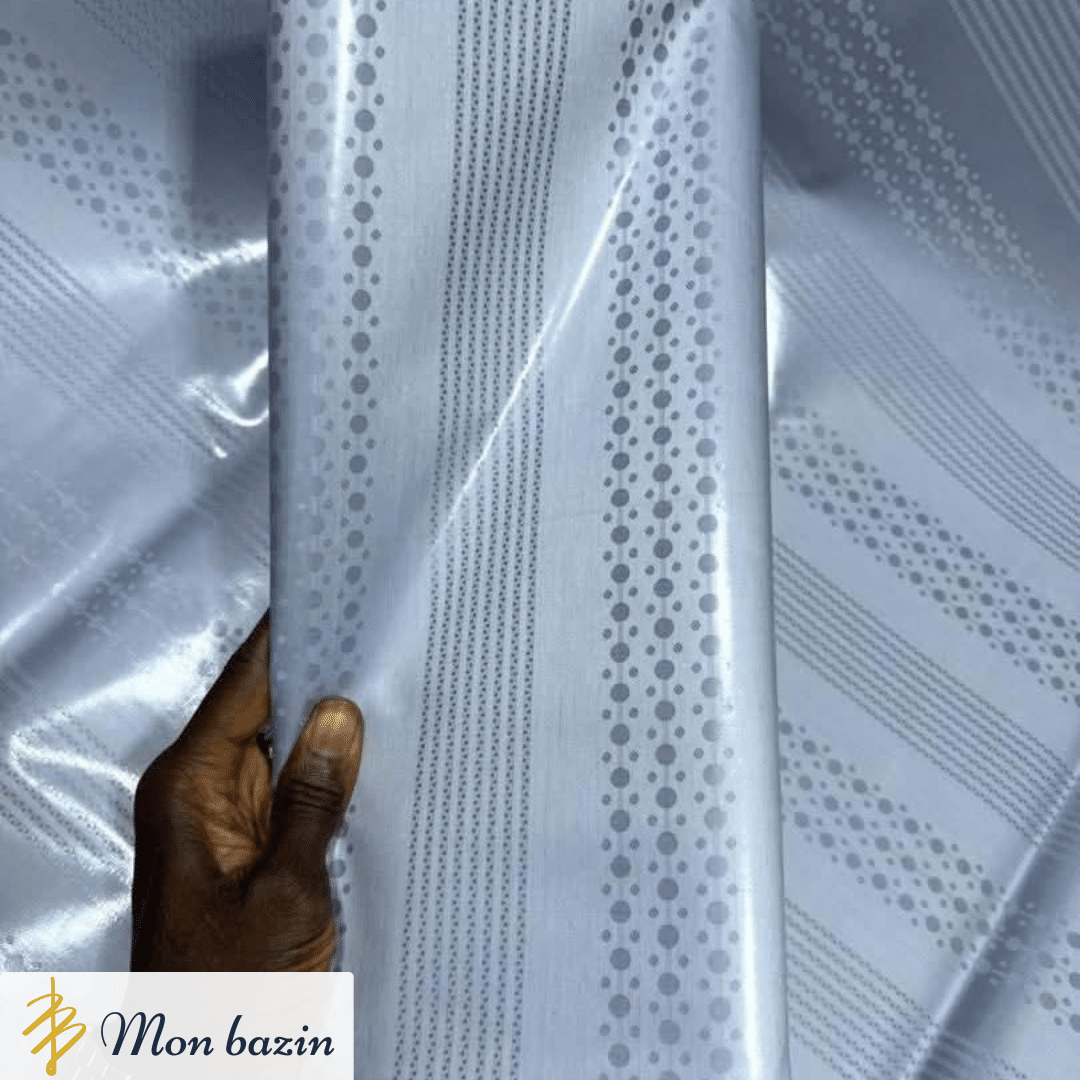 Élégant et mystérieux, le Bazin riche Gris Mystique “Yanfolila” séduit par sa douceur raffinée et son éclat subtil. Sa teinte gris clair évoque la modernité, la sérénité et l’élégance de Yanfolila, ville emblématique de l’art et de la tradition malienne.