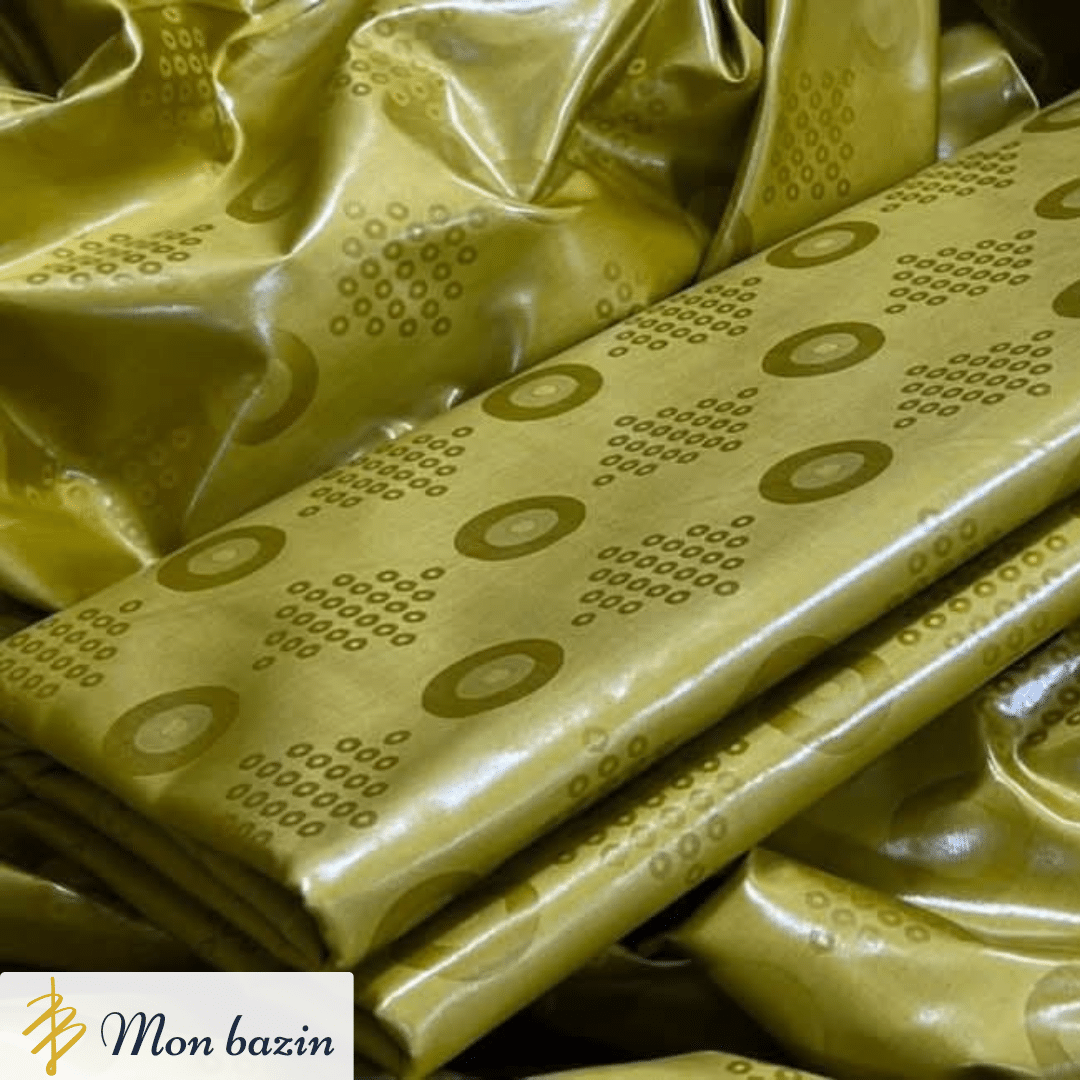 Confectionné en coton damassé de haute qualité, ce bazin capte subtilement la lumière avec une brillance douce et soyeuse. Son toucher agréable et sa fluidité naturelle en font un tissu idéal pour des créations raffinées, modernes et originales.