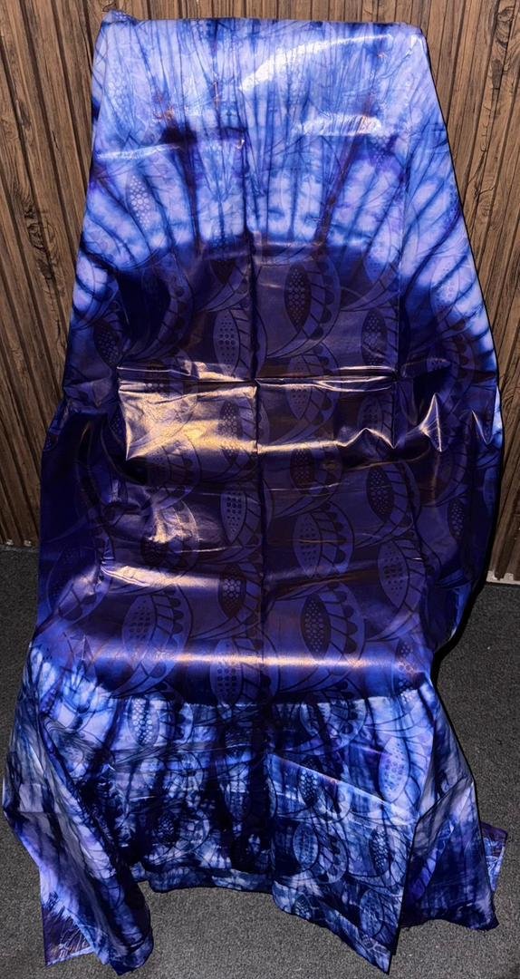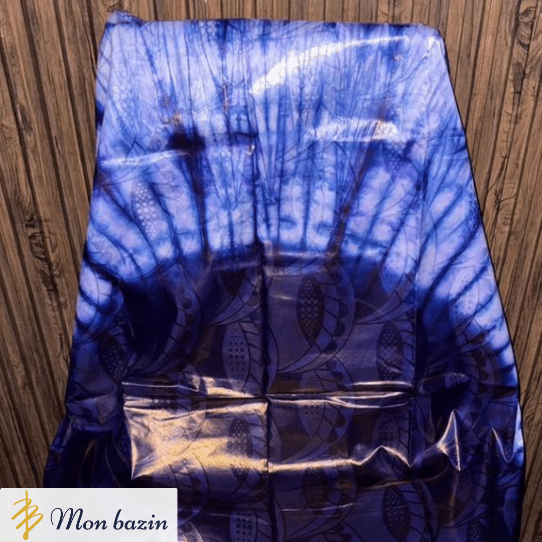 Le Bazin Teinté Bleu Indigo & Bleu Ciel “Saphir Royal” incarne la force du bleu profond et la douceur apaisante du bleu clair.