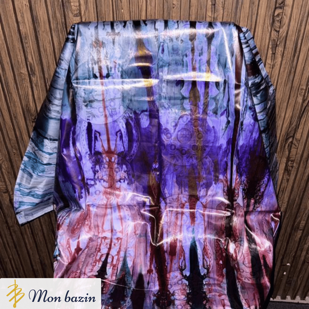 Le Bazin Teinté Bleu Mystique “Dogon” est une pièce d’exception qui attire le regard par son mélange de couleurs intenses. Ses nuances de bleu turquoise et violet s’entrelacent avec des coulures bordeaux et brunes, créant une impression de peinture vivante.