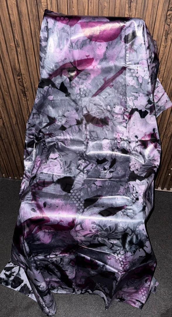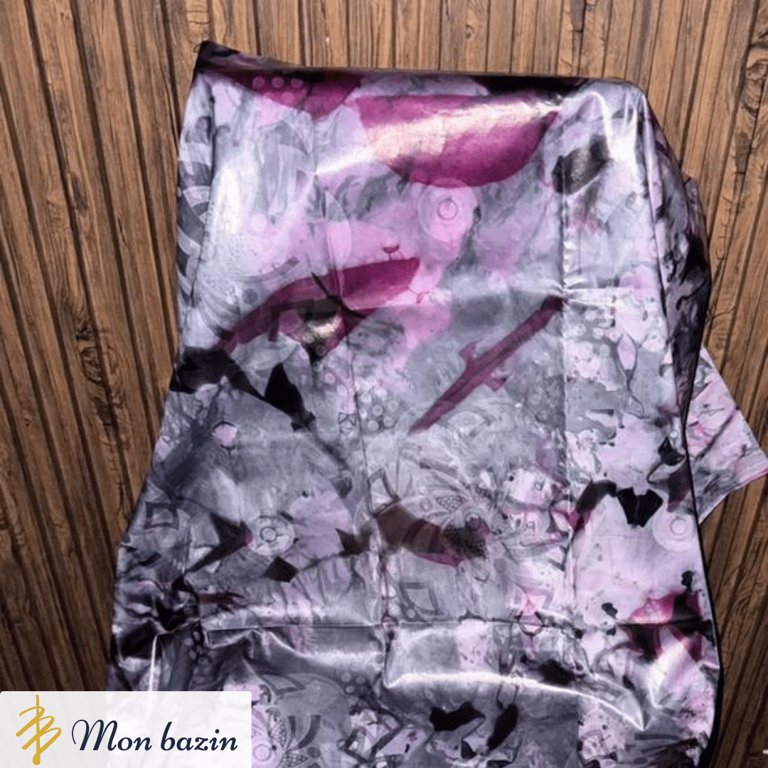 Le Bazin Teinté Gris Argent & Violet “Éclat Royal” est une véritable œuvre textile qui allie élégance contemporaine et raffinement intemporel.