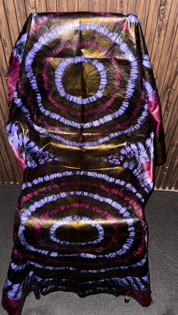 Le Bazin Teinté “Ondes Mystiques” est une œuvre textile qui combine tradition et modernité à travers une technique tie-dye raffinée.
