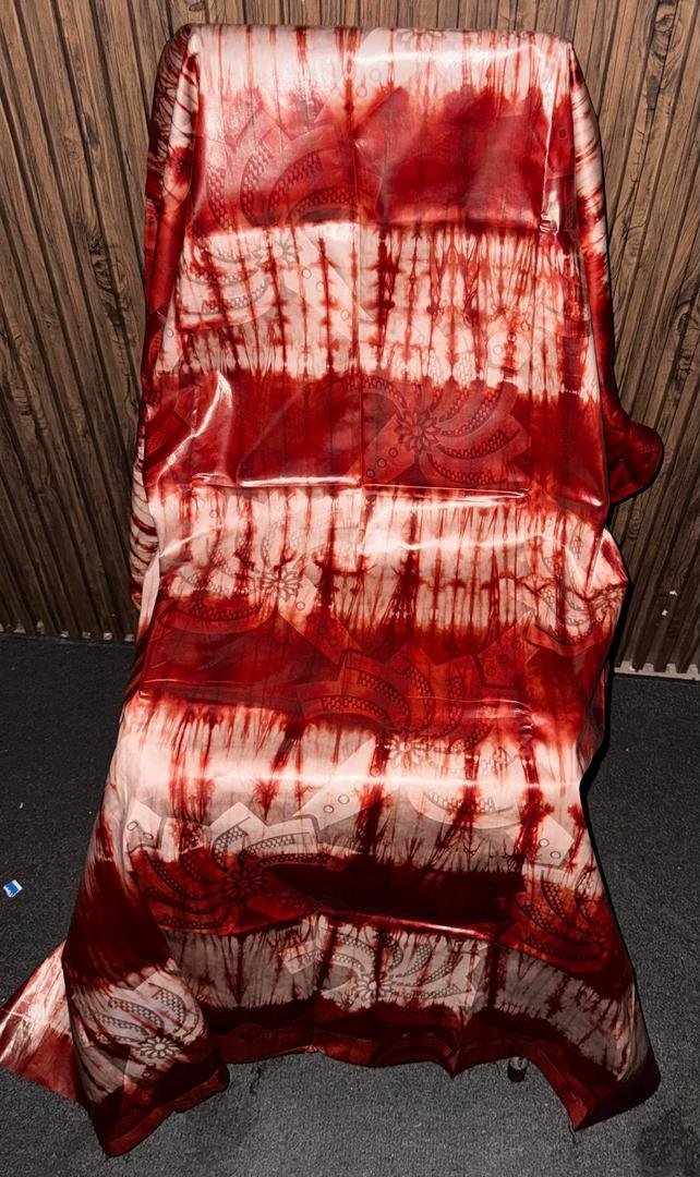 Sa teinte rouge ardent symbolise la passion, la puissance et la grandeur, tandis que ses motifs artistiques subtils rappellent la richesse des traditions africaines et la force de l’identité culturelle. Le tissu brille avec élégance, jouant avec la lumière pour offrir une allure distinguée et imposante.